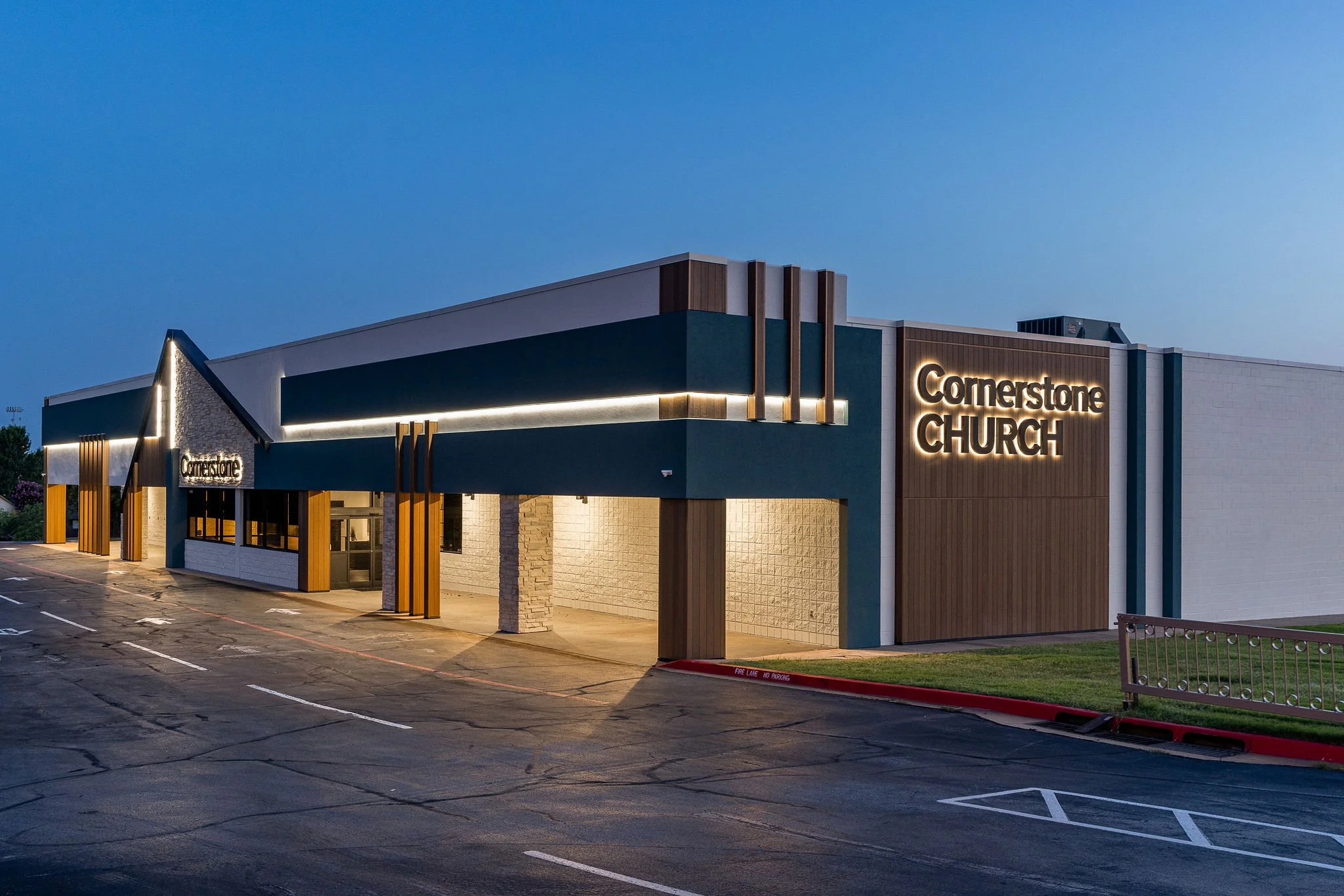 The Cornerstone Church project focused on the complete modernization of a mid-century religious facility’s exterior. Located in Midwest City, Oklahoma, this façade renovation was designed to improve both the building’s aesthetic identity and its long-term structural performance.